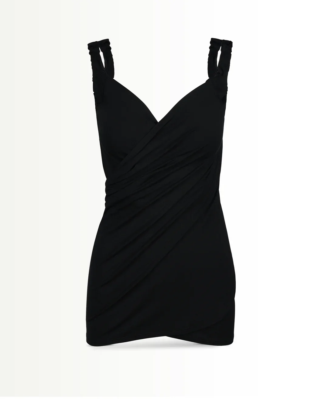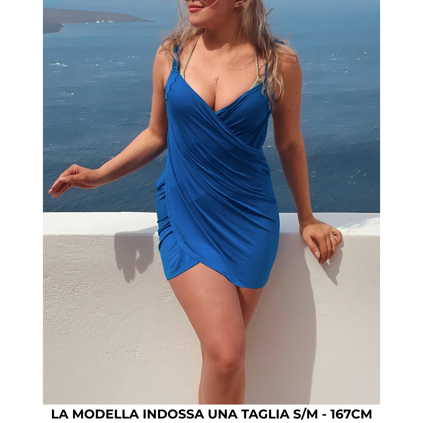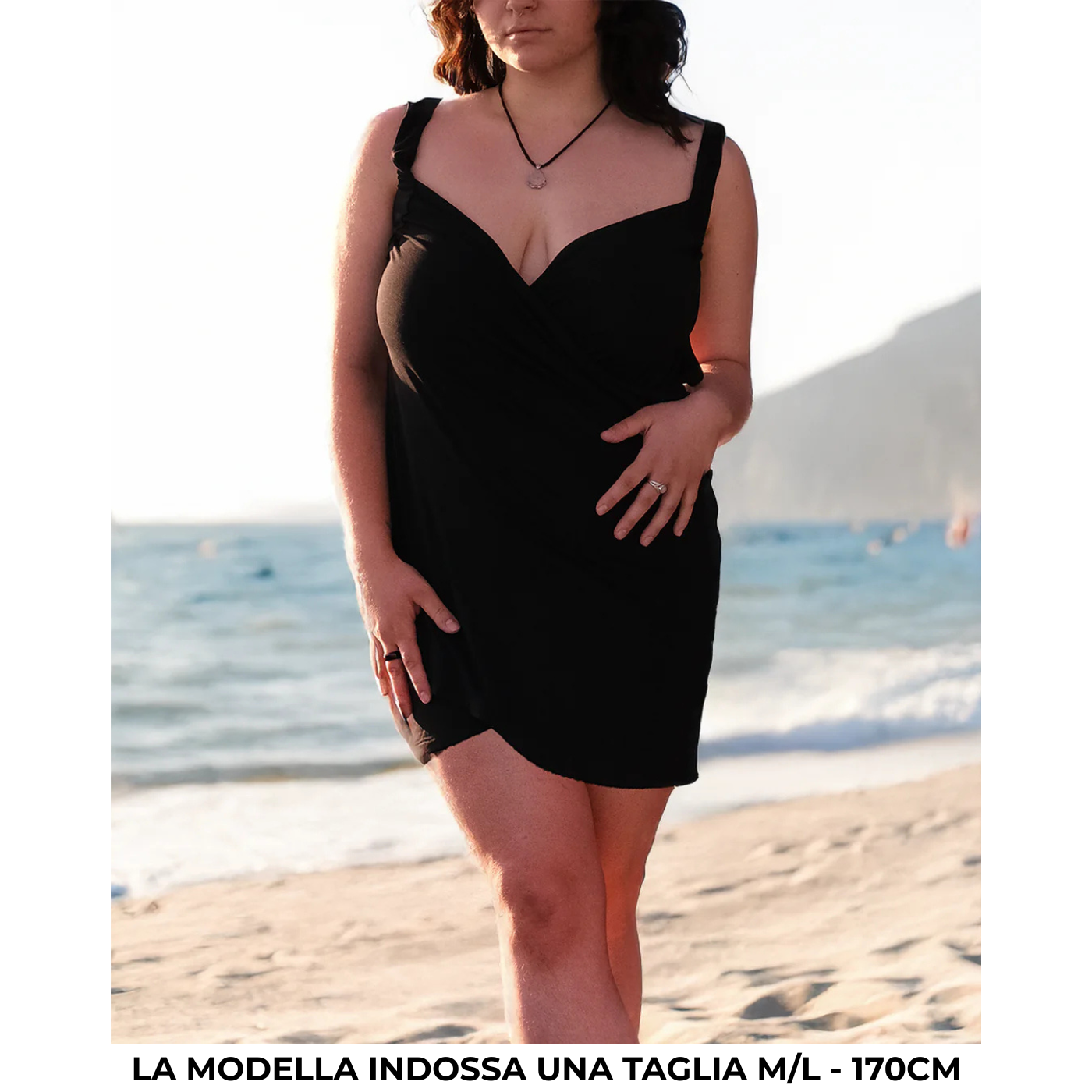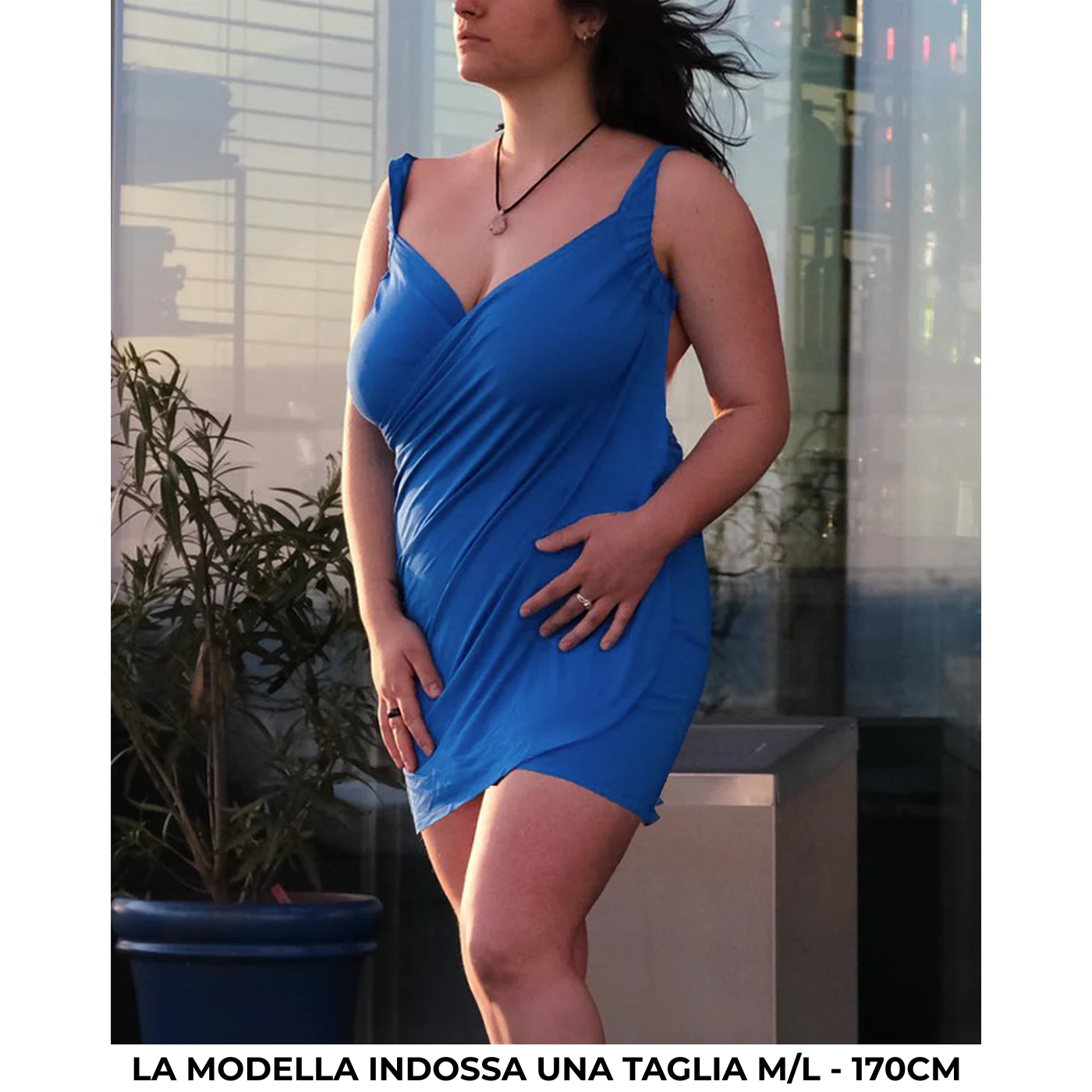 Con il suo design intelligente e il tessuto morbido ed elastico, questo copricostume si indossa in pochi secondi con un semplice gesto. Basta infilarlo dalle braccia, incrociarlo e voilà: sei pronta per la spiaggia o per un aperitivo sul lungomare!